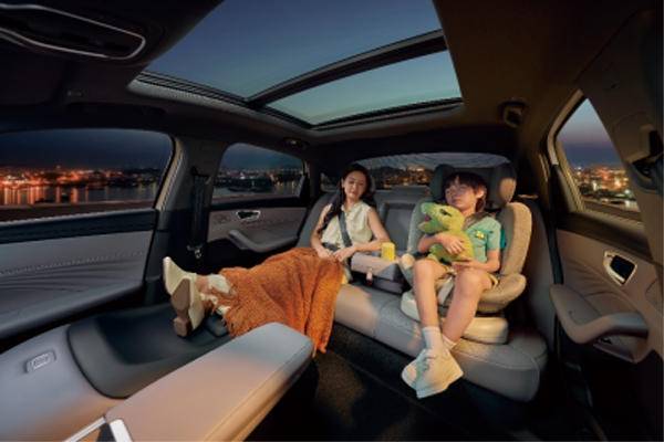 家轿的本质是“移动的家”,荣威M7 DMH以匠心精神重新定义座椅舒适标准,让每一位家人都能在出行中尽享安心与惬意。同级唯一全景沙发躺椅支持副驾一键折叠,可实现后排专属超长腿托,视野角度增加38°,为家人带来交流无阻的温馨体验。加厚腰靠与可调节头枕,实现背、腰、腿三维支撑,无论宝妈照顾孩童、旅途中照顾长辈,还是工作间隙小憩,皆可尽享从容自在的舒心时光。