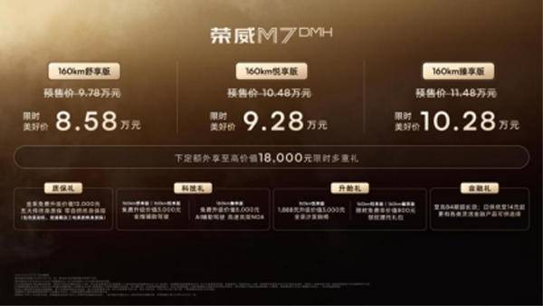 荣威M7 DMH以“大美好DMH”为产品内核,从舒适座舱、智能科技、混动实力到豪华设计,全面回应家庭用户真实需求。作为一款10万内的插混轿车,荣威M7 DMH展现出成为现象级爆款的强大潜力,有望成为越来越多家庭用户的品质首选。