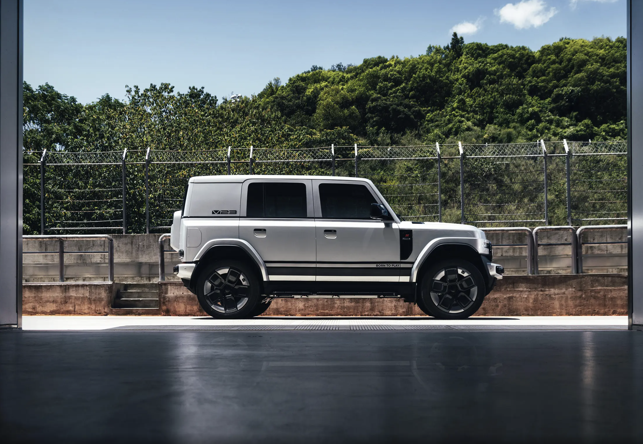 实际上iCAR全新超级V23整体设计基本上延续老款车型的设计风格,超短的前后悬搭配前后分体式保险杠,圆形的复古头灯配合外探式前后轮眉,与其经典的方盒子造型组成时尚、年轻、硬派越野产品的审美特性;同时后备箱依旧采用侧开门的开启方式,并且尾箱门处依旧配有方形“小书包”设计,个性、时尚且充满辨识度。