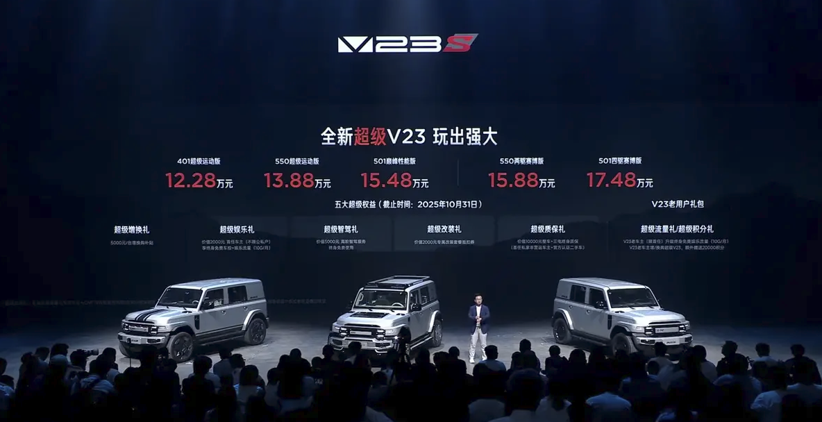 之前大家都说捷途这个品牌是真的把“方盒子”玩明白了,不过现在来看大家的结论下的还是有点早,应该说奇瑞汽车这次真的是把方盒子给“玩明白了”,奇瑞风云X3家族上市后,iCAR品牌“当家车型”——全新超级V23正式上市,此次新车共推出5款配置车型,指导价区间12.28万元-17.48万元,那么此次iCAR全新超级V23究竟迎来哪些升级与变化呢?