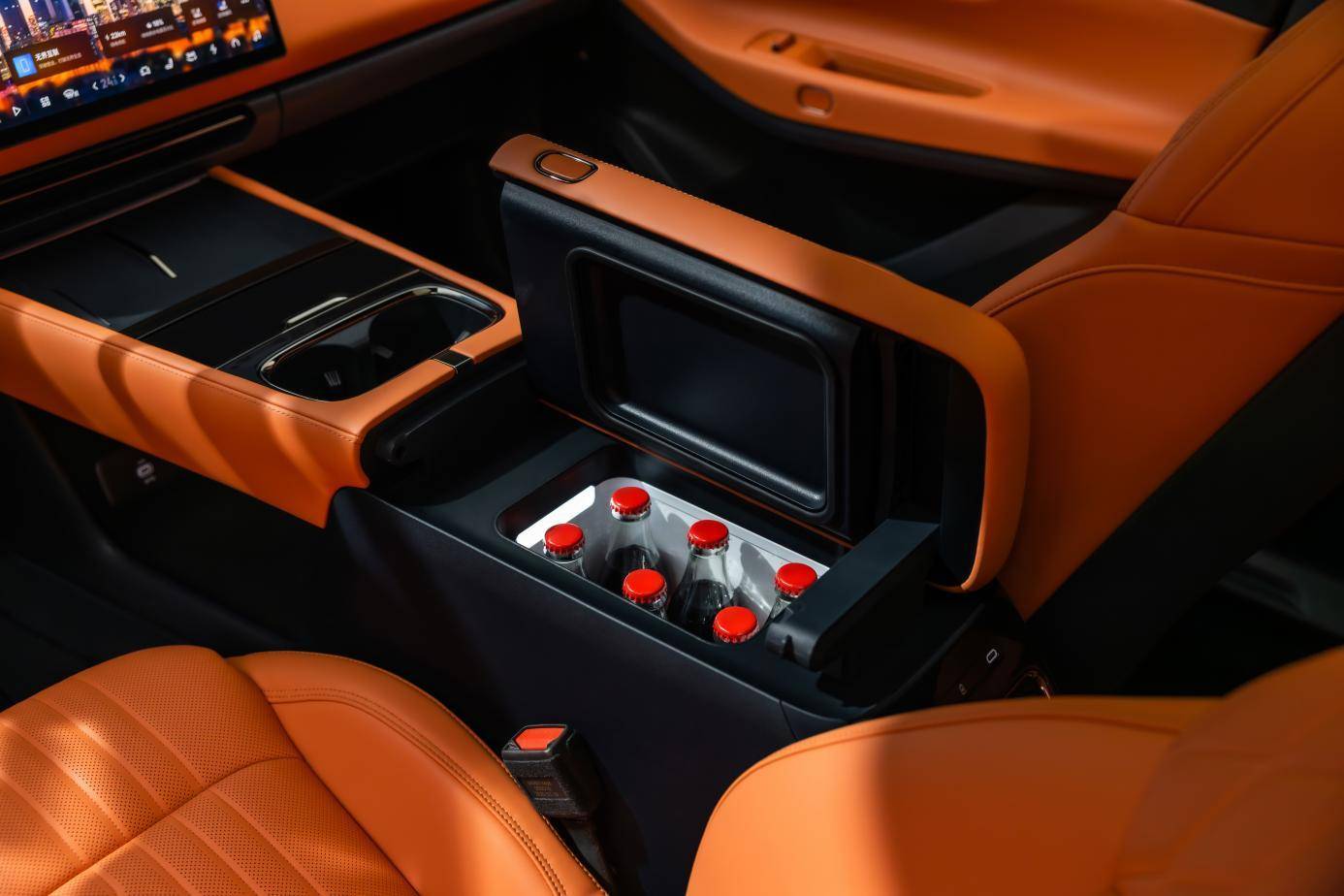 为全家增添极致的舒适体验,全新领克08 EM-P在中控扶手处提供了7L双开门冷暖控温冰箱,制冷速度同级最快,10分钟左右,从24℃降温至-6℃,保温范围35℃-50℃,并支持多种快捷预设场景模式,可通过车机和手机APP控温。无论是成人的冰饮料,还是为宝宝温奶,全家人的温度需求都能被精准满足。二排还配备了可承重15kg的小桌板,满足用户移动办公、儿童用餐,桌游等多种出行场景需求,大幅提升后排舒适度及娱乐体验。