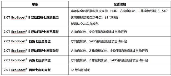 福特锐界L全面提升大家庭出行价值,并以“同级唯一具备2-2-3和2-3-2座椅布局可选”、“二排独立悬浮式座椅,一键安心舒躺,独立加热、通风的二排头等舱体验”和“同级唯一中配起即享二排座椅加热和方向盘加热”的超期待产品体验,为现代家庭用户打造更高级、更豪华、更舒适的“全家安心出游神器”。