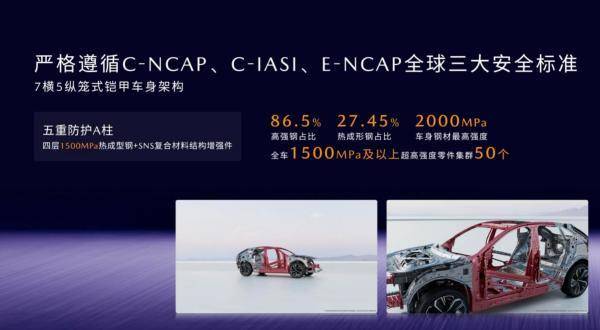 首先就是安全品质,在价格严重内卷的当下,很多车企选择在看不到的地方“偷工减料”,但是马自达EZ-60并没有,不管是海外版车型还是国内车型都遵循全球统一品质标准,全车采用7横5纵的高强度铠甲笼式结构,高强度钢占比高达86.5%,全系标配9气囊,不搞差异化对待。