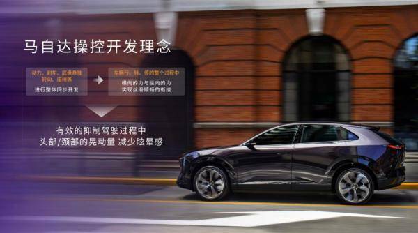 具体来看,马自达EZ-60全车采用了九风道设计,不仅优化了风阻,进一步提升续航,同时让操控更加灵敏、更加平稳。在硬件方面,马自达EZ-60首次搭载连续可变阻尼悬挂,能根据路况反馈进行毫秒级调整,再加上制动系统采用无极调节模式,刹车线性丝滑,进一步减少驾乘人员的晕车感。