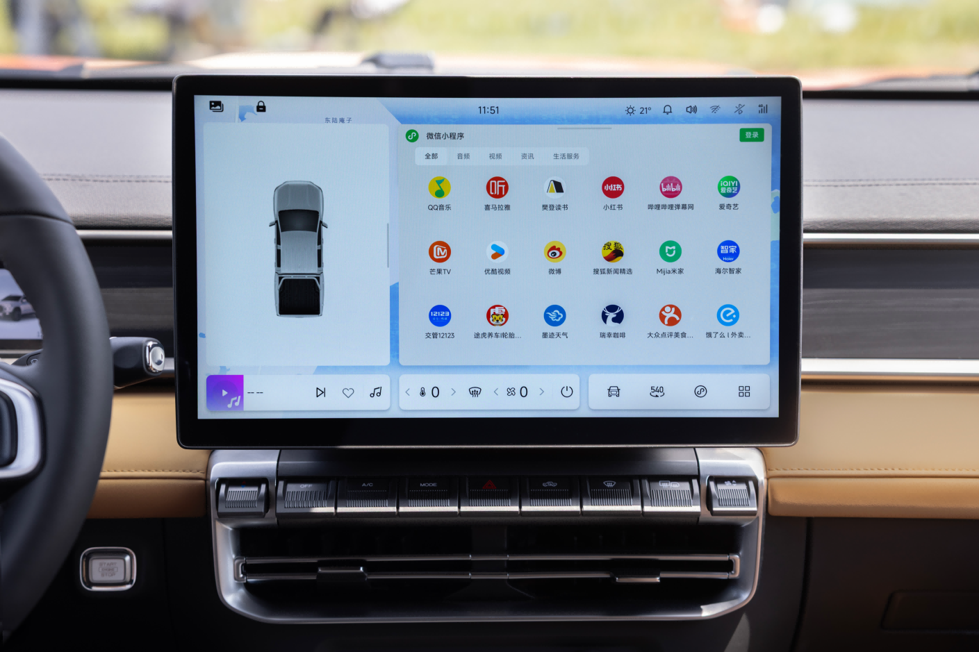 在智能驾驶辅助层面,威麟R08为用户打造了“上帝视角”——540°全景影像系统。该系统融合360°环视影像与180°底盘透视功能,可如无人机般俯瞰车辆周围及底盘下方路况,连井盖、坑洼等细微障碍也清晰可见。在实际驾驶中,这一功能表现卓越:窄路会车时,系统实时预判车轮轨迹,毫米级距离提示让驾驶者无需调整后视镜也能安全通行;越野场景下,借助底盘透视功能,可提前识别石块、暗坑等风险,从容应对复杂路况;泊车时,360°无死角视野辅助,即便是新手也能轻松完成精准入库,驾驶信心倍增。