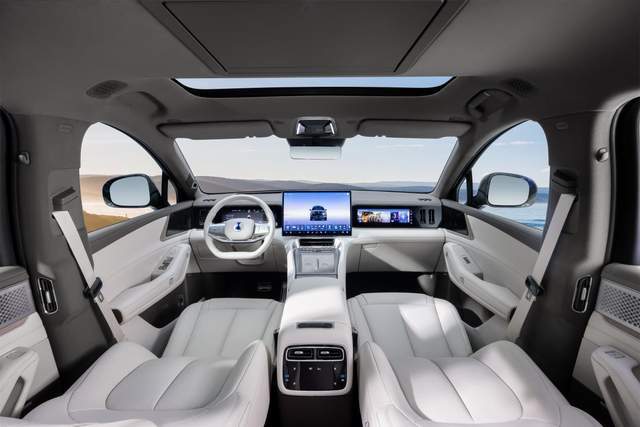 外观设计上,腾势N8L也跳出了豪华SUV"非黑即白"的商务套路,用六款源自华夏文明的车身色彩,给家庭出行添了份东方韵味。典雅红像秋日里的丹霞,雪玉萤似初雪后的晴空,玄璟墨如深夜的星空,石影澜是山间的薄雾,再加上霜云墨、翠华墨两款高定双色,每一种颜色都不是简单的颜料调配,而是把东方美学揉进了现代汽车设计里。走进车内更能感受到这份用心:云锦米、金山棕、铂檀灰三种温和色调,搭配亲肤的软质材料和舒缓的线条,没有夸张的科技屏堆砌,反倒像家里的起居室一样让人放松——毕竟对家庭用户来说,"看着舒服、摸着安心"比"看着唬人"重要得多。