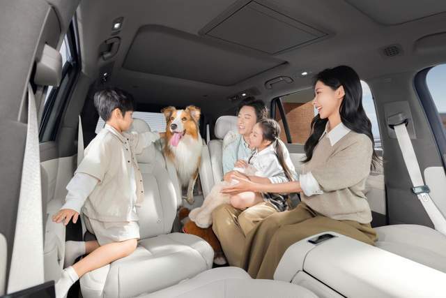更值得一提的是它的"无界融合"智能生态——不是简单连接个手机,而是真正融入家庭生活。和好孩子联合打造的智能儿童座椅,能自动调节角度,孩子坐得更安全;智能宠物安全座椅解决了带宠物出行的烦恼;和倍轻松合作的车载按摩系统,长途开车后能放松肩颈;连支付宝的"智能点单+车载支付"都搬进了车里,途中想喝杯咖啡,在中控屏上点单付款,到店就能直接拿,不用下车折腾。这种"从人到宠物、从出行到生活"的全场景关怀,才是智能该有的温度。