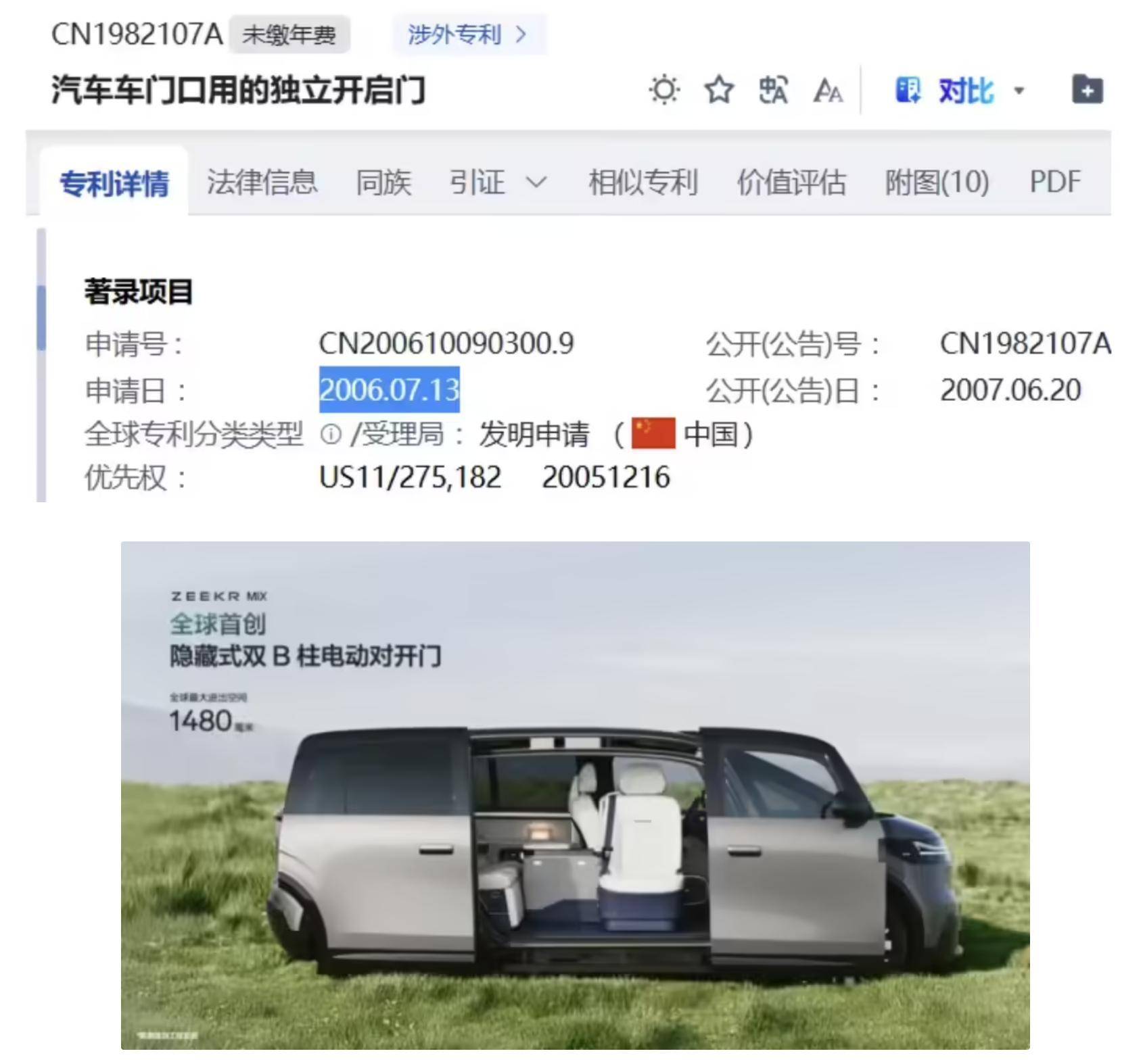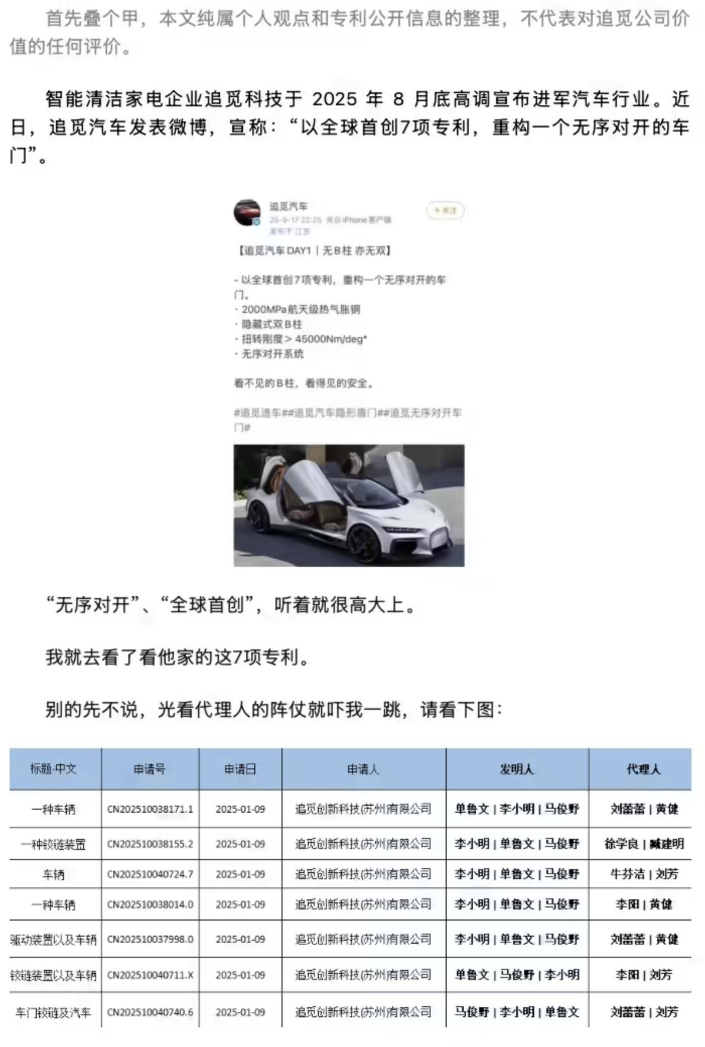 然而,公众号“专利挖掘机”通过深度分析指出,这7项专利均围绕同一套无B柱车门系统展开,发明人仅为3位工程师,但专利代理人多达7位,存在“分案申请”的嫌疑。
