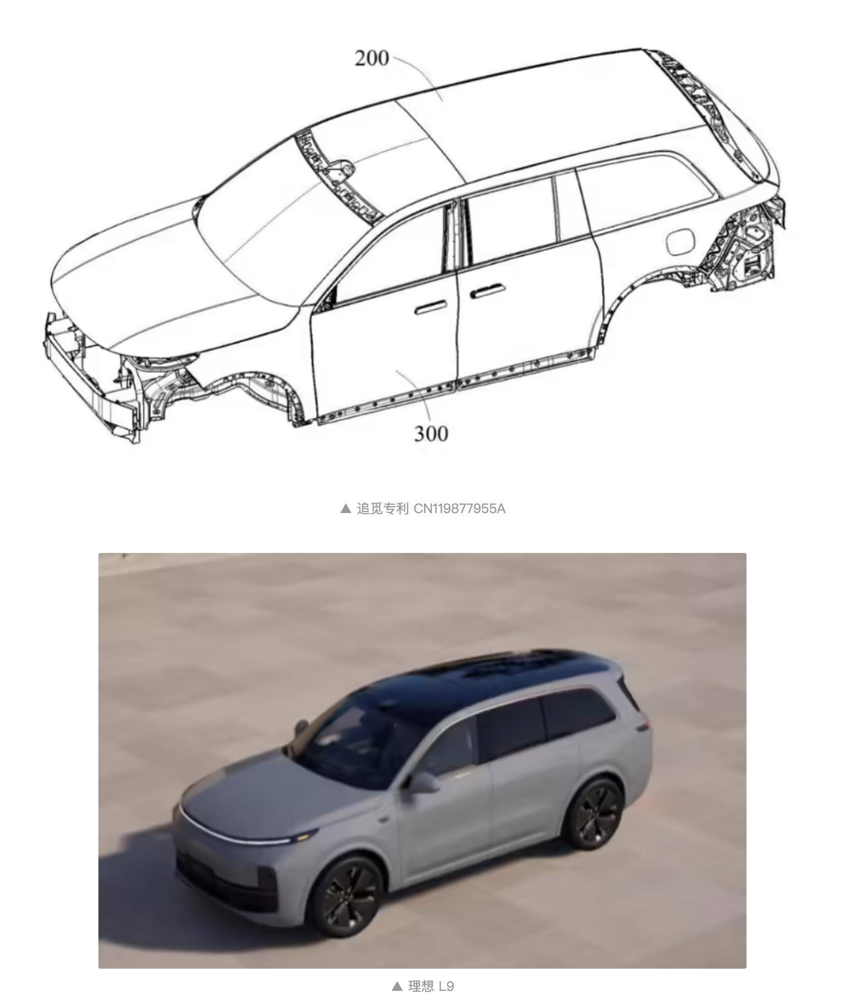 争议进一步升级。追觅专利附图中的汽车总成图显示,其车灯、传感器布局及充电口位置与理想L9、劳斯莱斯库里南存在显著相似之处。