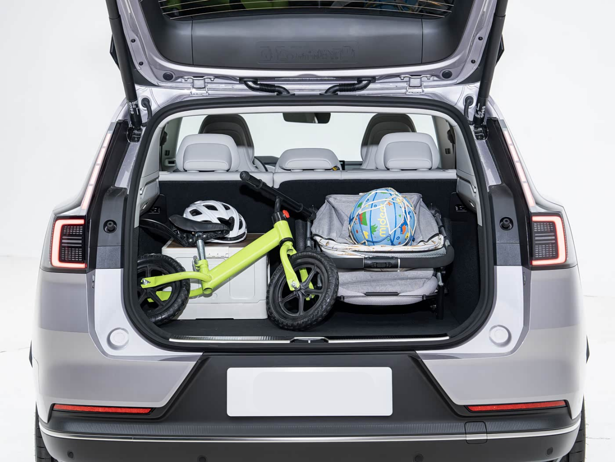 常规后备厢容积达到408L,放下4-5个行李箱不成问题,即便不放倒后排座椅,也能一次性装下小朋友的自行车、儿童推车、儿童玩具、零食箱等物品,实用性出色。放倒后排座椅后,后备厢最大能拓展至1456L,像自驾游、搬家、露营等场景都能胜任。