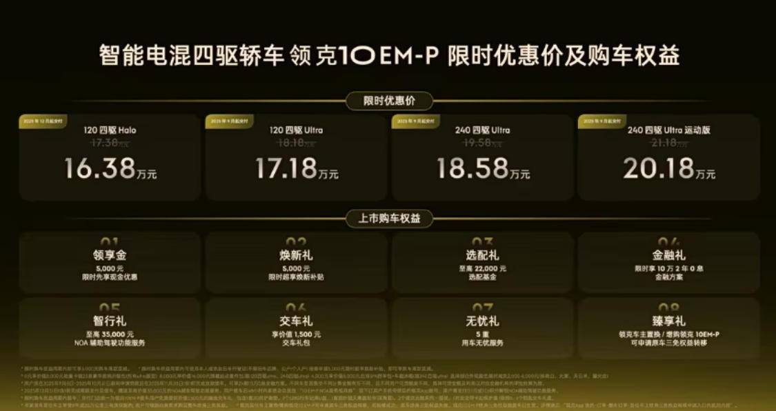 不过,奇瑞风云A9L也别高兴地太早,因为就在9月8日,领克上市了全新的领克10 EM-P车系,新车不仅限时优惠价仅16.38万起,还全系标配了双电机四驱系统。所以,照领克10 EM-P这掀桌子的“架势”,难道它会是一台新爆款?