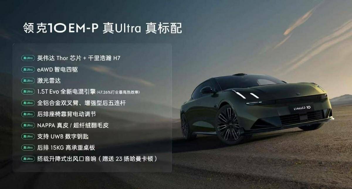 不同于风云A9L、汉DM-i主打两驱、顶配才提供四驱系统的是,领克10 EM-P做到了入门即四驱,也是30万内唯一标配四驱的混动轿车。