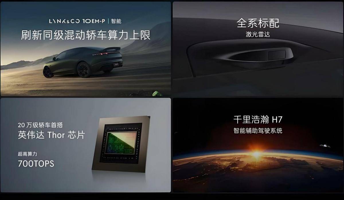 与此同时,领克10 EM-P在智能化层面还全系都搭载了激光雷达, 标配城市、高速领航辅助功能。除最低配车型,均使用千里浩瀚H7智驾方案,提供英伟达 Drive AGX Thor芯片和双目摄像头,芯片算力达700 TOPS,可满足像记忆泊车、循迹倒车、辅助匝道自动驶出(入)等一系列的功能。