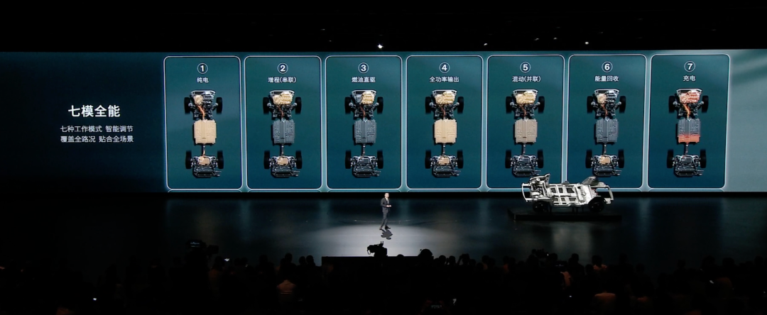 此外,由于匹配了3挡DHT混动变速箱,所以还能够支持纯电、串联、并联、直驱等七种模式智能切换。
