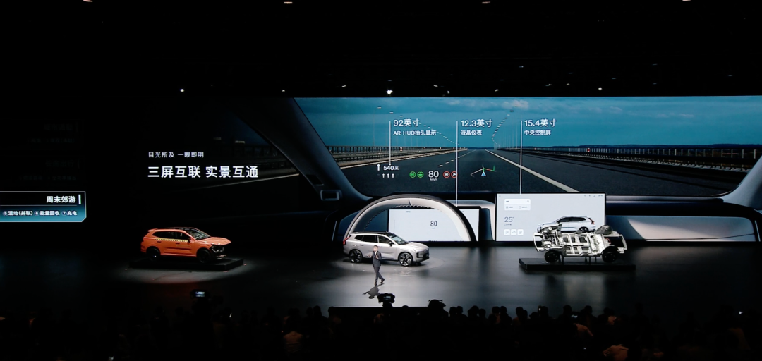 内饰上则用到了23 英寸全液晶仪表 + 15.4 英寸悬浮中控屏 + 92 英寸 AR-HUD 的三屏联动。