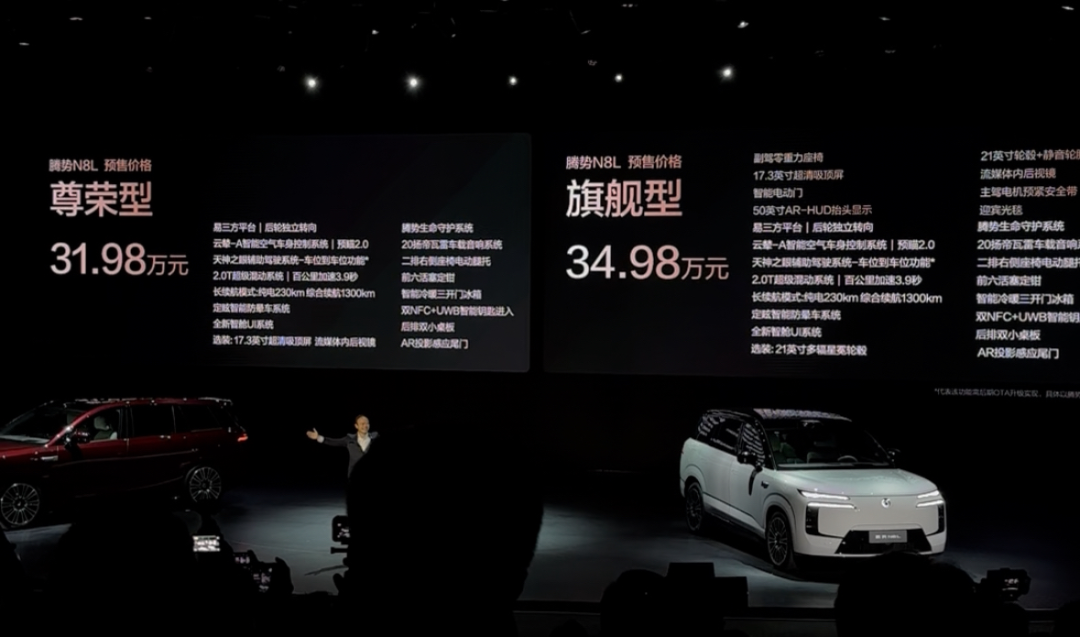 不过预售价为31.98-34.98万起的N8L,现在终于来给腾势把空白填上了。