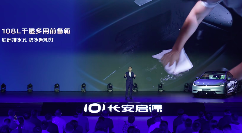 启源A06车身长宽高分别为4885/1916/1496mm,轴距2922mm,提供108L前备厢,为同级最大,并且有排水孔,干湿两用都行。
