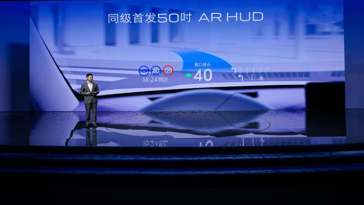 此外,车辆配备了50英寸全景AR-HUD抬头显示系统,不仅在清晰度、亮度和色彩表现上表现卓越,更具备比常规HUD更远的成像距离,进一步提升行车信息的可读性与安全性。