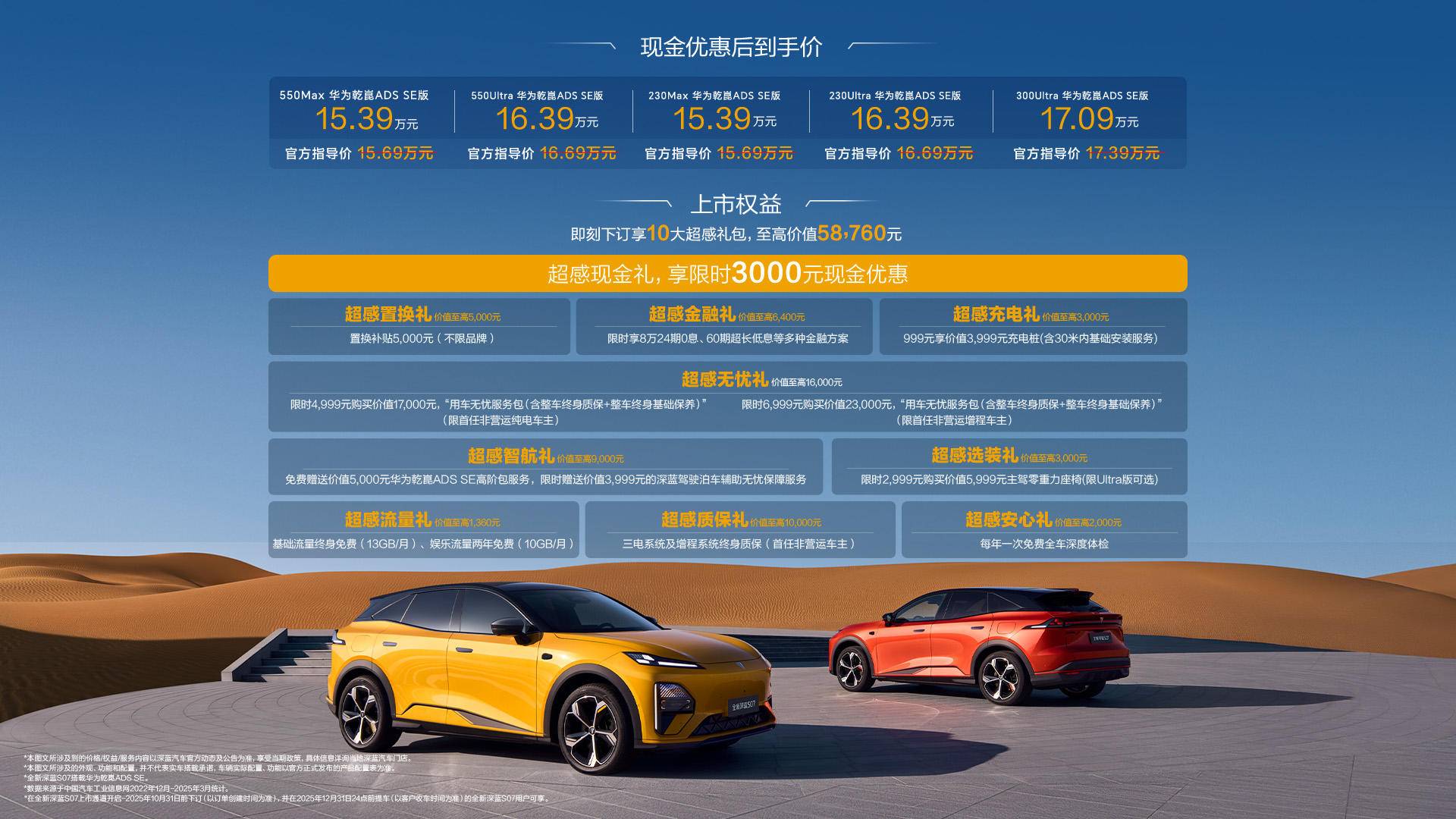 参与本次活动的深蓝S09、L07、S07三款经典产品进阶升级,性价比傲视同级,给消费者带来了更高的产品使用价值。