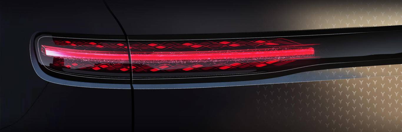 尾灯手稿中的山海倒影后灯,同样蕴含着 “雅” 的智慧。一横代表天际线,上半部分模拟群山轮廓,下半部分则如同水中倒影,“背有靠山” 的寓意赋予了设计深厚的文化底蕴。同时,尾灯的点亮效果经过精心设计,灯光柔和且富有层次感,既保证了夜间行车的安全性,又营造出优雅静谧的氛围,让车辆在夜晚也能成为一道独特的风景线。