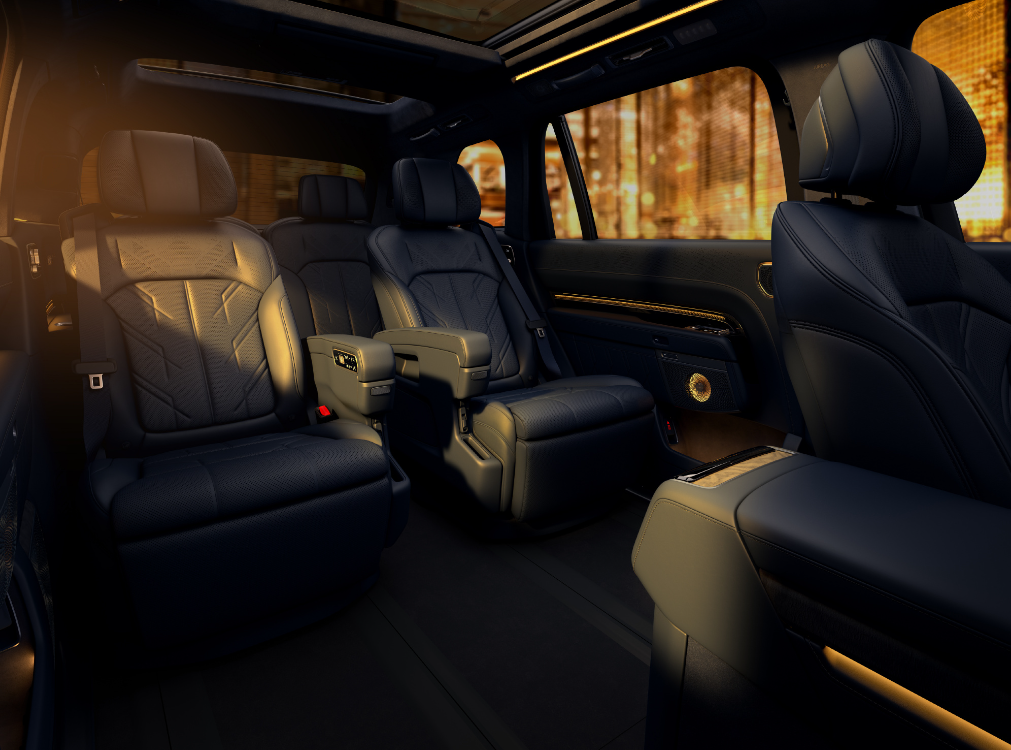 轮胎规格为285/45 R22的倍耐力P ZERO轮胎,可选密辐式轮辋,或镜面轮辋。侧裙和车窗有镀铬装饰,体现一种审美上的秩序感。
