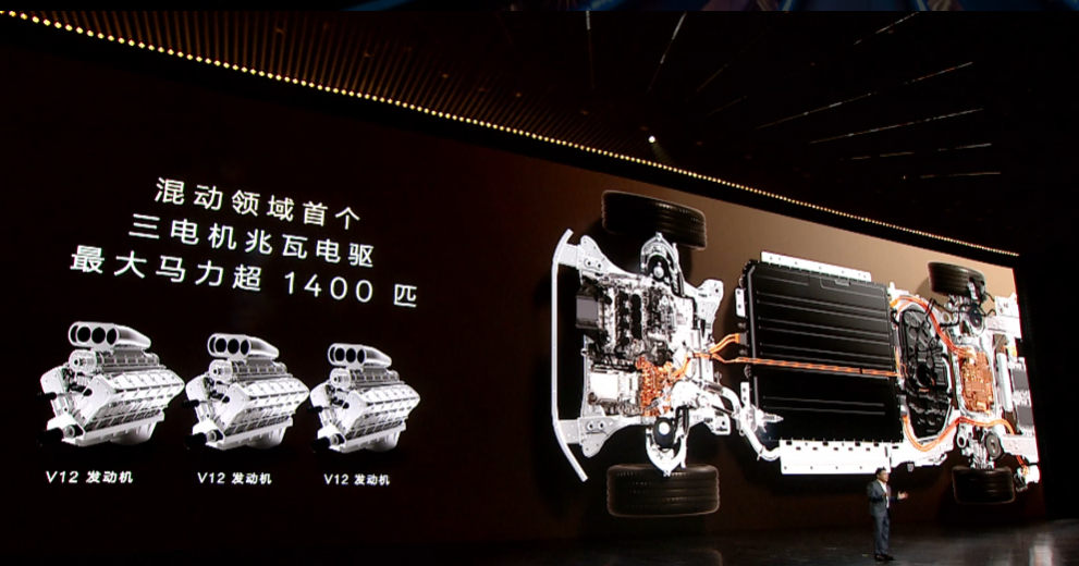 基于浩瀚-S架构打造,极氪9X采用全栈900V高压架构,搭载2.0T插混动力,三电机最大功率达到1030kW,整车百公里加速仅3.1s,极速可达到240km/h。