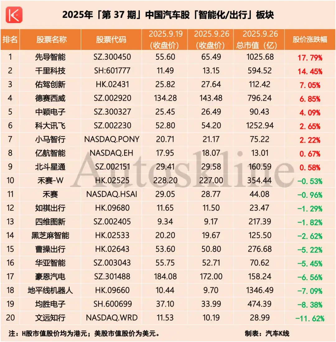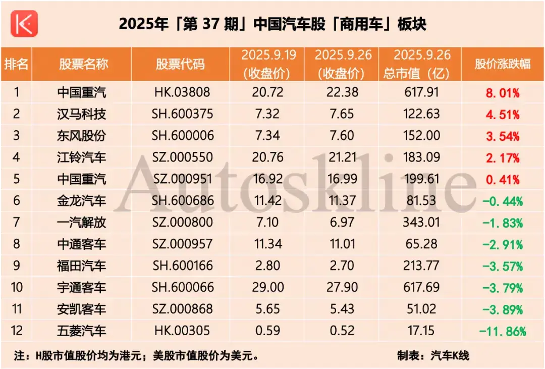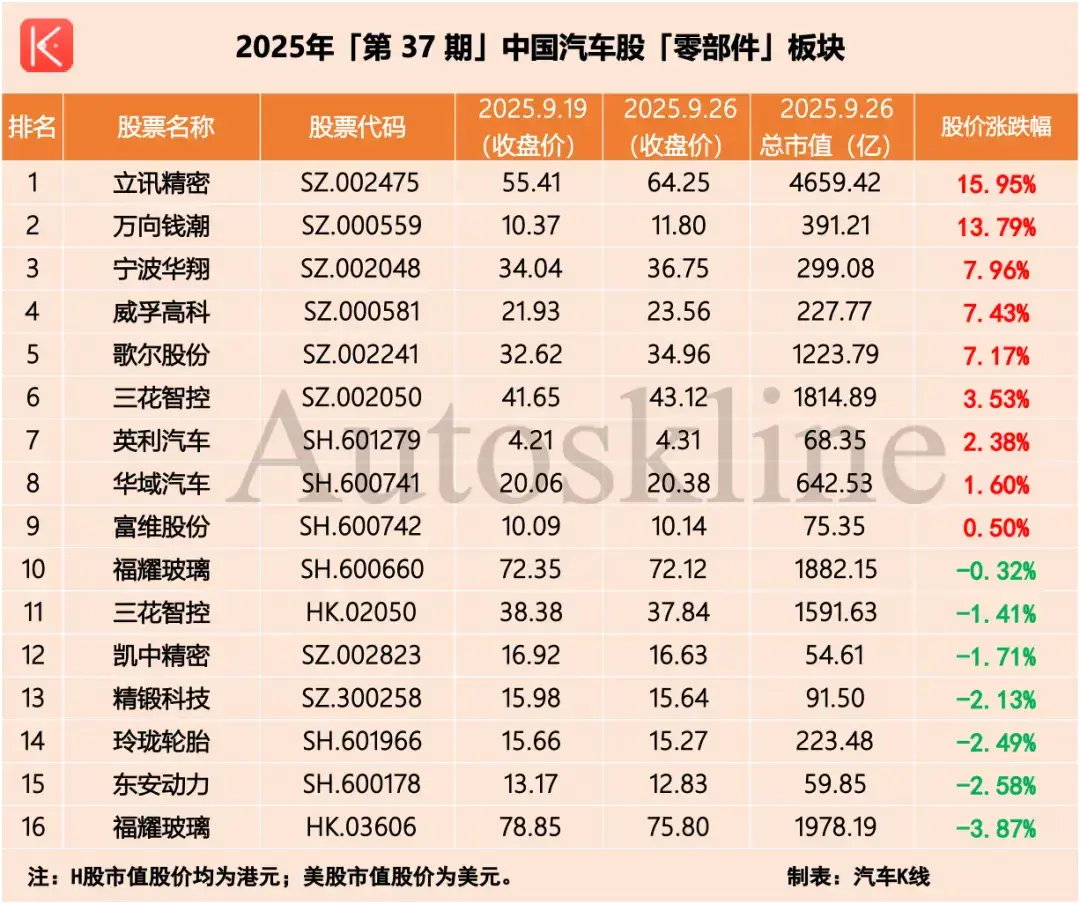 附:汽车股六大板块周度走势(9.19-9.26)