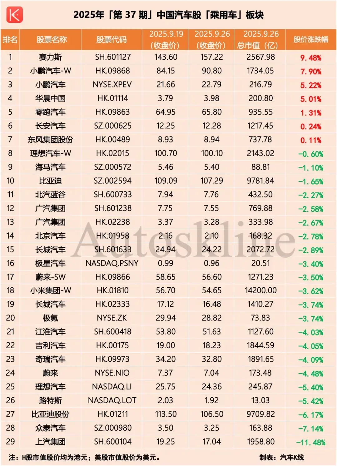 由此,《汽车K线》统计在册的乘用车板块汽车股增至29只,总数增至110只,总市值达到约13.5万亿元。