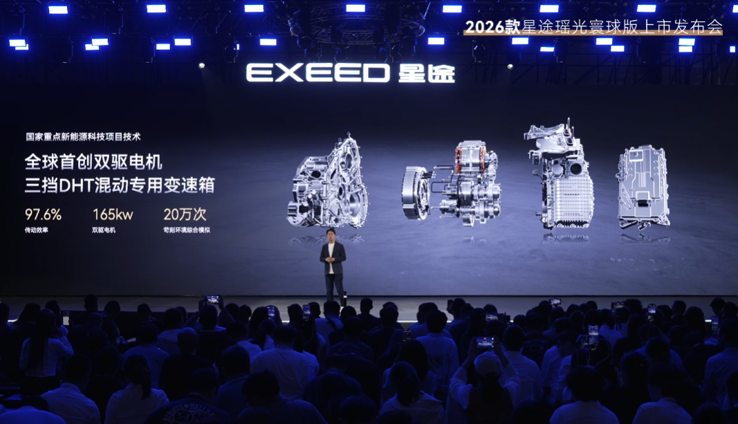 2026款星途瑶光C-DM寰球版搭载1.5T插混动力,配三电机、三档DHT混动专用变速箱,系统最大功率455kW,峰值扭矩920Nm,百公里加速仅4.26s。