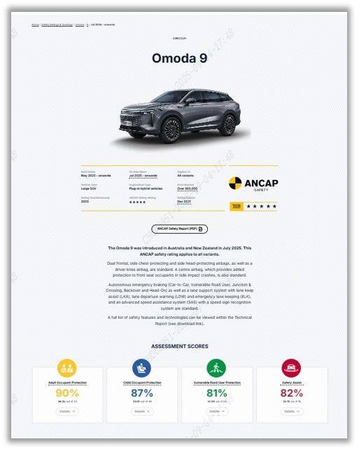 最号称“全球最严”新车安全评价规程的ENCAP欧洲新车安全碰撞测试中,星途瑶光C-DM以出色表现与超高得分率,获得了2025年五星安全评级,同时也获得了澳洲ANCAP五星安全评级,成为同级唯一获此安全认证的混动SUV。