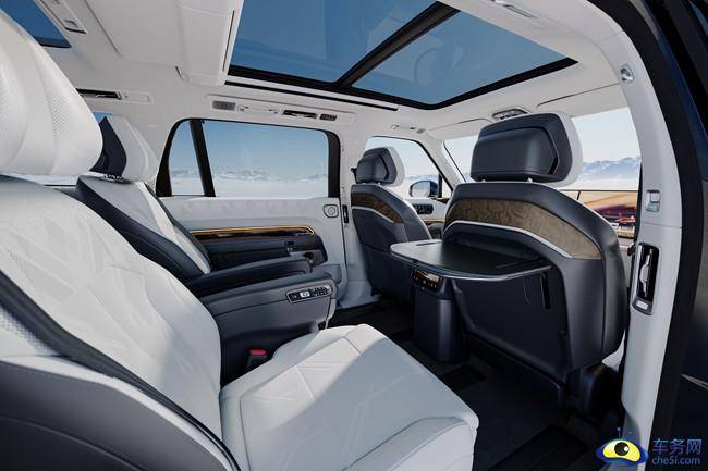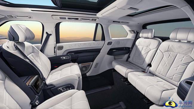 座舱以“通透”为核心,6.3平米座舱面积实现人均超1平米空间,三排乘坐空间均为同级最大。配置上,全车六把座椅采用超柔NAPPA全粒面头层真皮,主驾配备同级唯一主动侧翼支撑;二排“行云座椅”拥有22点位按摩、零重力与伊姆斯躺椅双模式,可180度旋转形成对坐会客厅,搭配9升智能冷暖恒温冰箱;第三排支持135度躺倒与140毫米电动滑移,专属独立天窗打造“阳光房”体验。