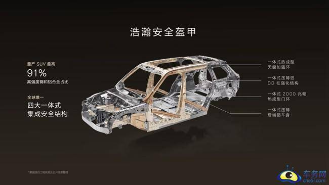 安全方面,白车身高强度钢与铝合金占比91%,车身扭转刚度41600N·m/deg,通过行业首个单车四向连环碰撞测试,配备侧碰主动抬升系统与高速横风5A认证,11级强风下可自动保持稳定。