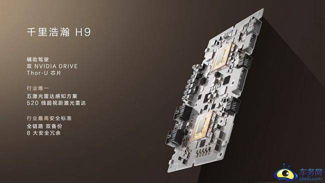 智能驾驶层面,提供千里浩瀚H7与H9双方案。H7版搭载NVIDIA Thor-U芯片(700TOPS算力),支持无图园区漫游、极充站自主领航等功能,首创G-AES通用障碍物紧急转向辅助(130公里/小时可连续避让);H9版采用双Thor-U芯片(1400TOPS算力) 43感知单元,全球首发红外AEB功能,可在浓雾中精准识别障碍物。