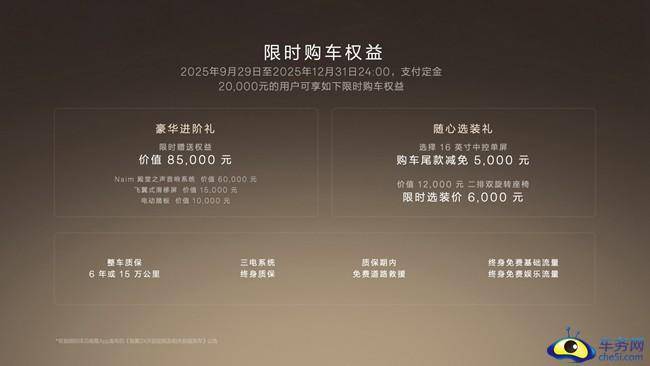 上市同期推出重磅限时权益:支付2万元定金可免费获赠Naim音响(6万元)、飞翼式滑移屏(1.5万元)、电动踏板(1万元)等价值超15万元配置;提供1万元超级置换金、五年免费充电(极氪车主)或3万极分(吉利系车主)权益;曜黑套装限时选装价2.5万元(原价6万元)。品牌层面,极氪成立四年累计销量突破55万台,业务覆盖40多个国家和地区,极氪009已夺得全球多个市场豪华MPV销量冠军。此次极氪9X凝聚吉利集团顶尖资源,预售期间70%用户拥有50万元以上豪华车型,将进一步巩固极氪在高端市场的领导地位。
