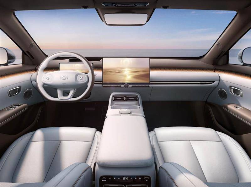 为了提升日常用车的便利性,启源A06在前排提供双50W无线充电槽的同时,还在后排提供了67W的Type-C接口。而方向盘加热、前排座椅电动调节/电动记忆/加热/通风/按摩/主驾驶座头枕音响、后排座椅加热/通风/按摩、超迈145度无级电动零压后排座椅等配置,则直接将乘车舒适度给拉满。为了让车内空间更透亮,启源A06还配备有带电动遮阳帘的全景天幕,并配备前后门双层隔音玻璃以提升车厢静谧性。此外,9.5L双层冷暖冰箱、20喇叭NEVO Sound天枢源声音响系统、256色车内氛围灯、“拍一拍”开启前/后备厢以及实体蓝牙钥匙等配置,都让启源A06展现出越级的超价值感。