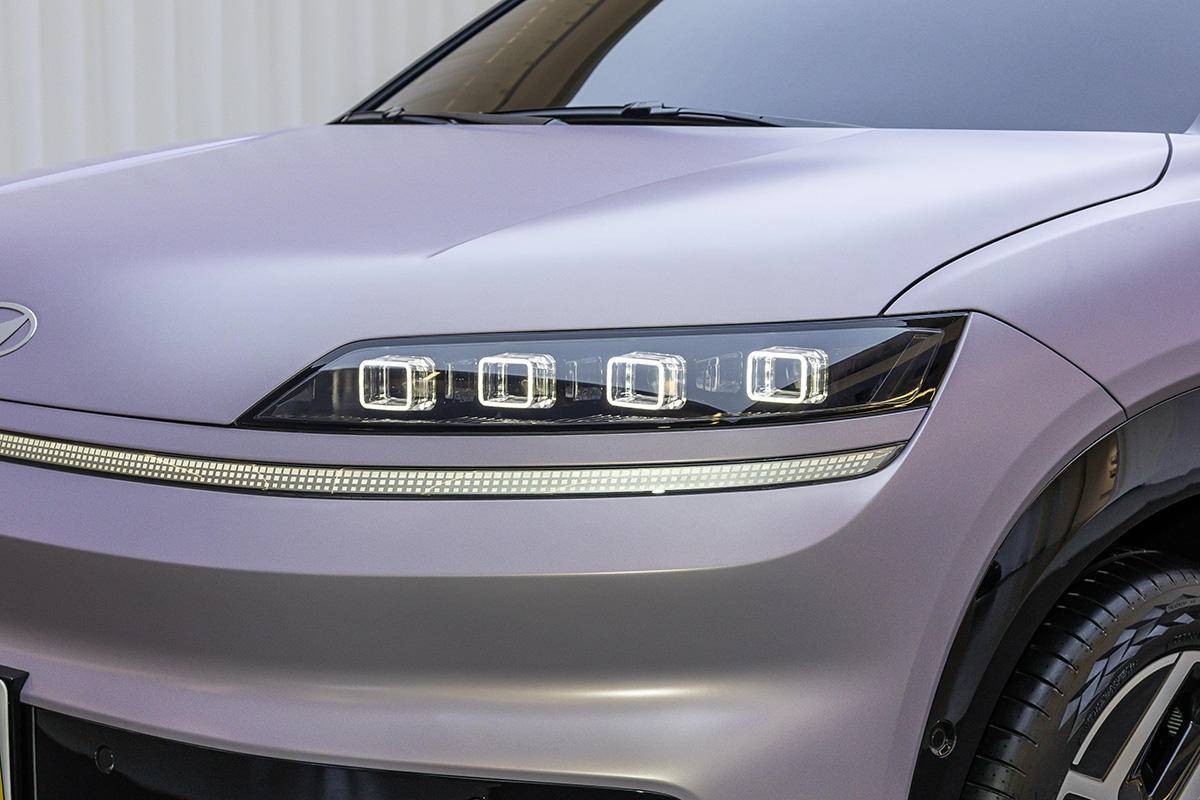 这辆全新的现代EO 羿欧外观部分整体造型很简洁,前脸部分很有辨识度,尤其是大灯的设计,大灯造型轮廓简约,但是内部四组带光带的方形光源很抢眼,在大灯组下部还带有贯穿式的灯带。前杠上部是封闭式造型,下部使用了主动式的进气格栅。