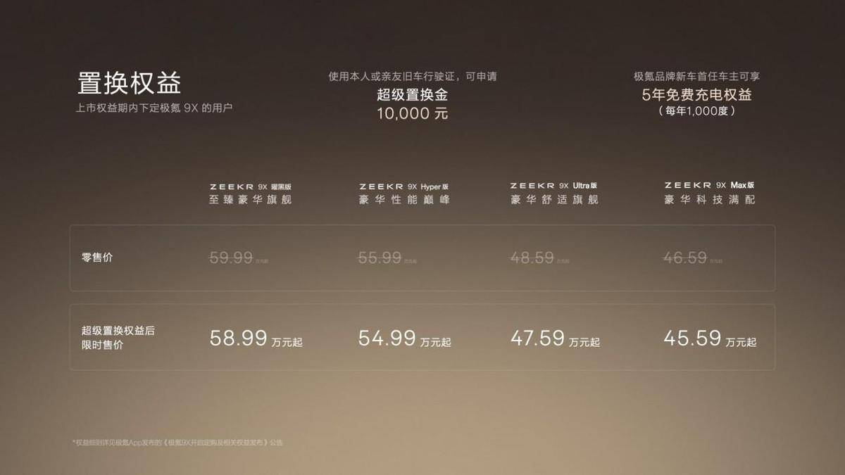 新车共推出四个版本:Max版、Ultra版、Hyper版和曜黑版,官方售价46.59万元-59.99万元。另外如果叠加10000元的置换权益,限时售价可低至45.59万元起。