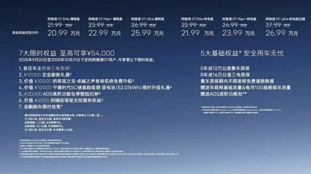 写在最后:阿维塔07 2026款以 “高配平权” 打破了智驾配置的等级壁垒,6 款车型的分层逻辑清晰。追求性价比选 Elite 增程版,看重舒适选 Max + 版,兼顾性能与豪华则选 Ultra 版。结合三方技术背书与限时价格优势,该车在 20-30 万元新能源 SUV 市场中,为不同需求用户提供了精准的选择方案。