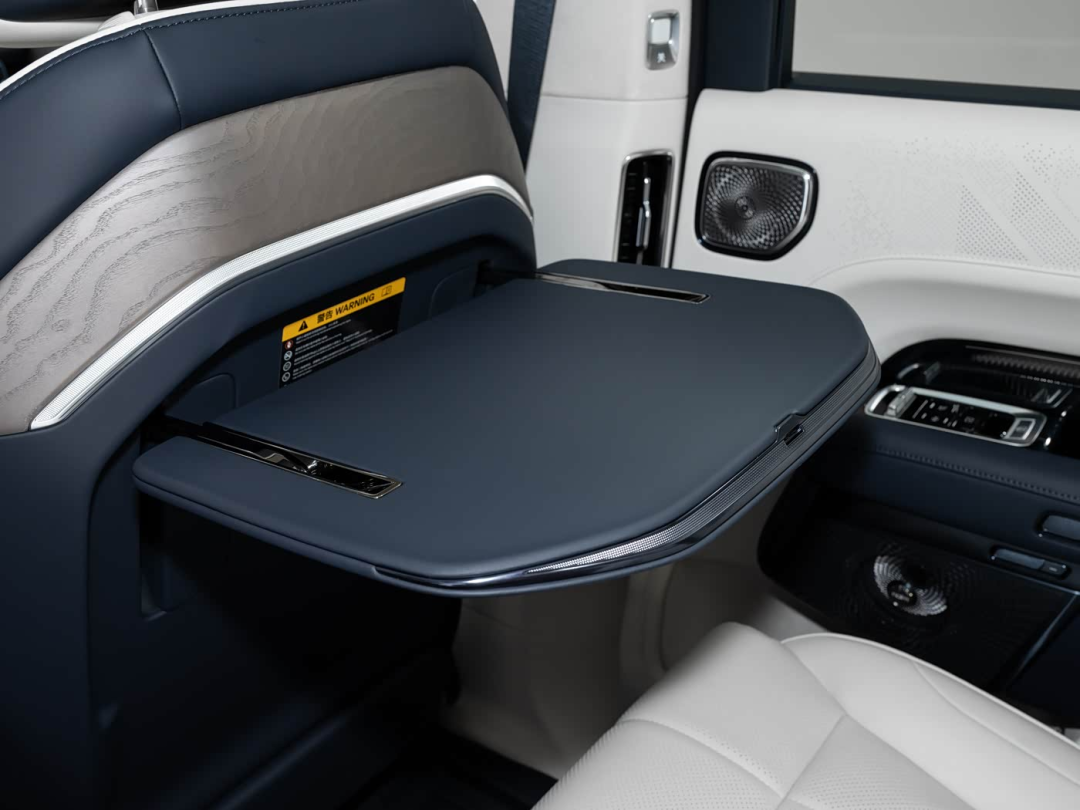 其次是功能性配置方面,这个价位的车型自然是能给都给,全车的隐私玻璃、第三排专属的独立天幕、电吸门、电动天地尾门、北欧的真木内饰、水晶旋钮、冰箱都是标配;