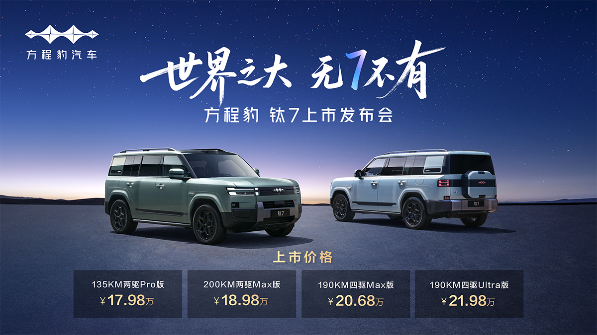 作为方程豹“悦已宜家”精神的集大成者,钛7既有路虎的面子、又有理想的里子、更有方程豹独有的乐子,里外兼顾乐趣无穷,打破了硬派和家用的二元对立,是家用硬派全新品类超值之选。