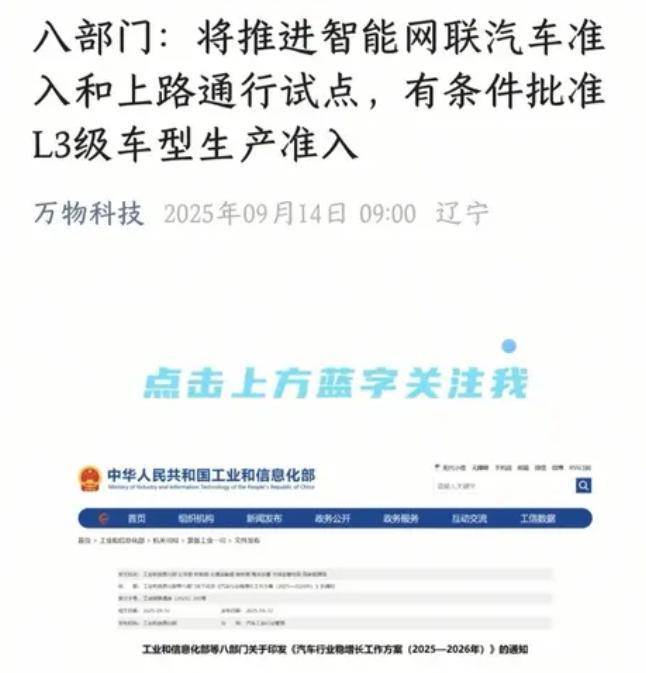 那到了前几天国家八个部门一起发了文件,正式给L3级自动驾驶开了绿灯。车企可以生产L3级别的智能汽车,我们也能在路上合法使用更高级的自动驾驶功能了。