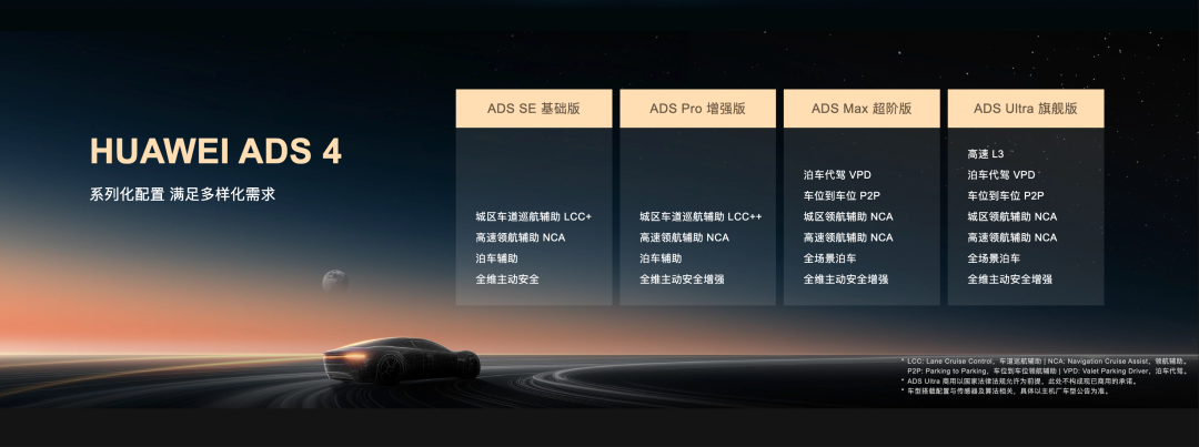 华为ADS 4 在硬件上分个等级,分别是:ADS SE、ADS Pro、ADS Max、ADS Ultra,不同的版本对应了不同的硬件和功能,同时也有着不同的价格。
