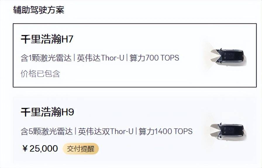 极氪品牌起步就是浩瀚H7,只有极氪9X具备最高规格的浩瀚H9方案可选,选装价格则是2.5万元。