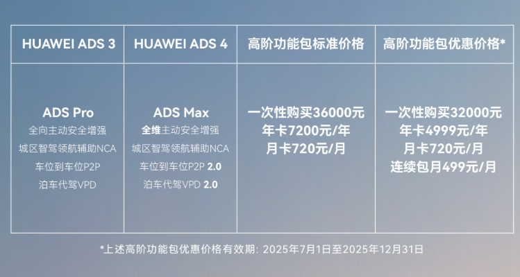 今年7月,华为针对ADS 4 Max版的价格做了一轮调整,优惠后的一次性购买价格为3.2万元。