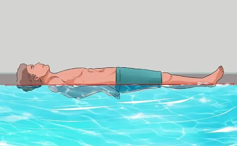 于是绝大多数人只要用尽全力深呼吸,人体在水中是会缓慢向上浮起的。