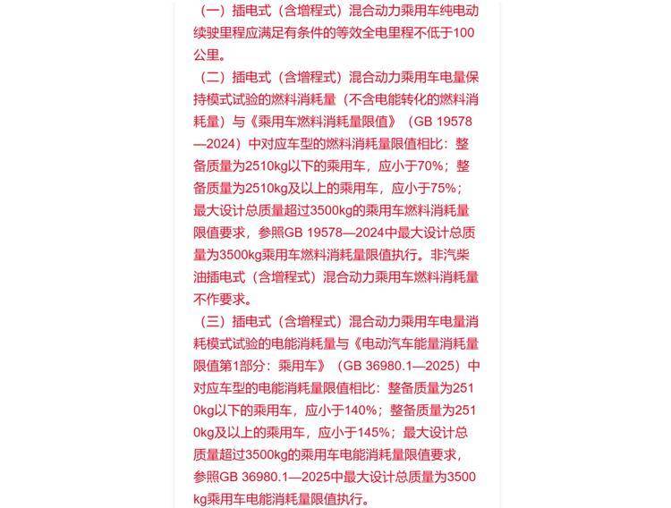 目前车型包含插混车型、增程车型、以及纯电车型,其中插电式混动(包含增程以及插混),这些“伪绿牌”的车型,从原来的43公里直接飙升到100公里,涨幅高达132%。这就意味着此前只能跑几十公里加一个超大油箱的,号称自己超2000公里的综合续航的车型,2026年起将彻底失去购置税减免资格。