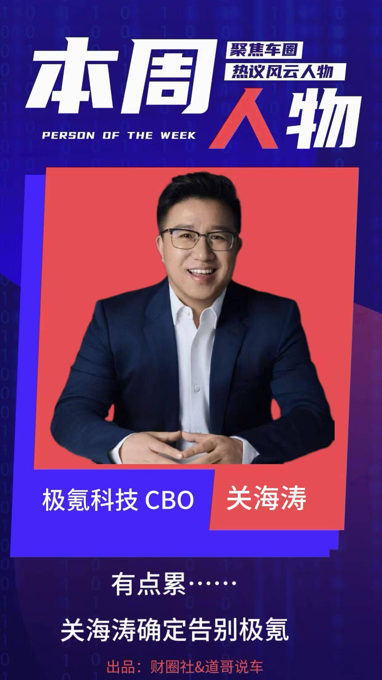 伴随朋友圈的一句文案,极氪科技集团CBO关海涛确认了离职的消息。被称为“汽车业华为八杰之一”的他,结束了在极氪效力两年的工作生涯。