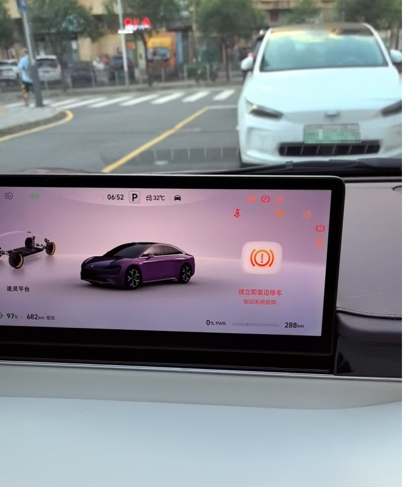 10 月 1 日,张先生在安徽省黄山出差时,遭遇车辆刹车问题。当日上午 9 时 20 分左右,他将车停在路边启动后掉头转弯,轻踩刹车时感觉无制动;因车辆处于动能回收状态且车速慢,他未留意中控仪表数据,往前低速行驶数百米接上朋友、准备上高速时,仪表报警显示刹车系统故障。