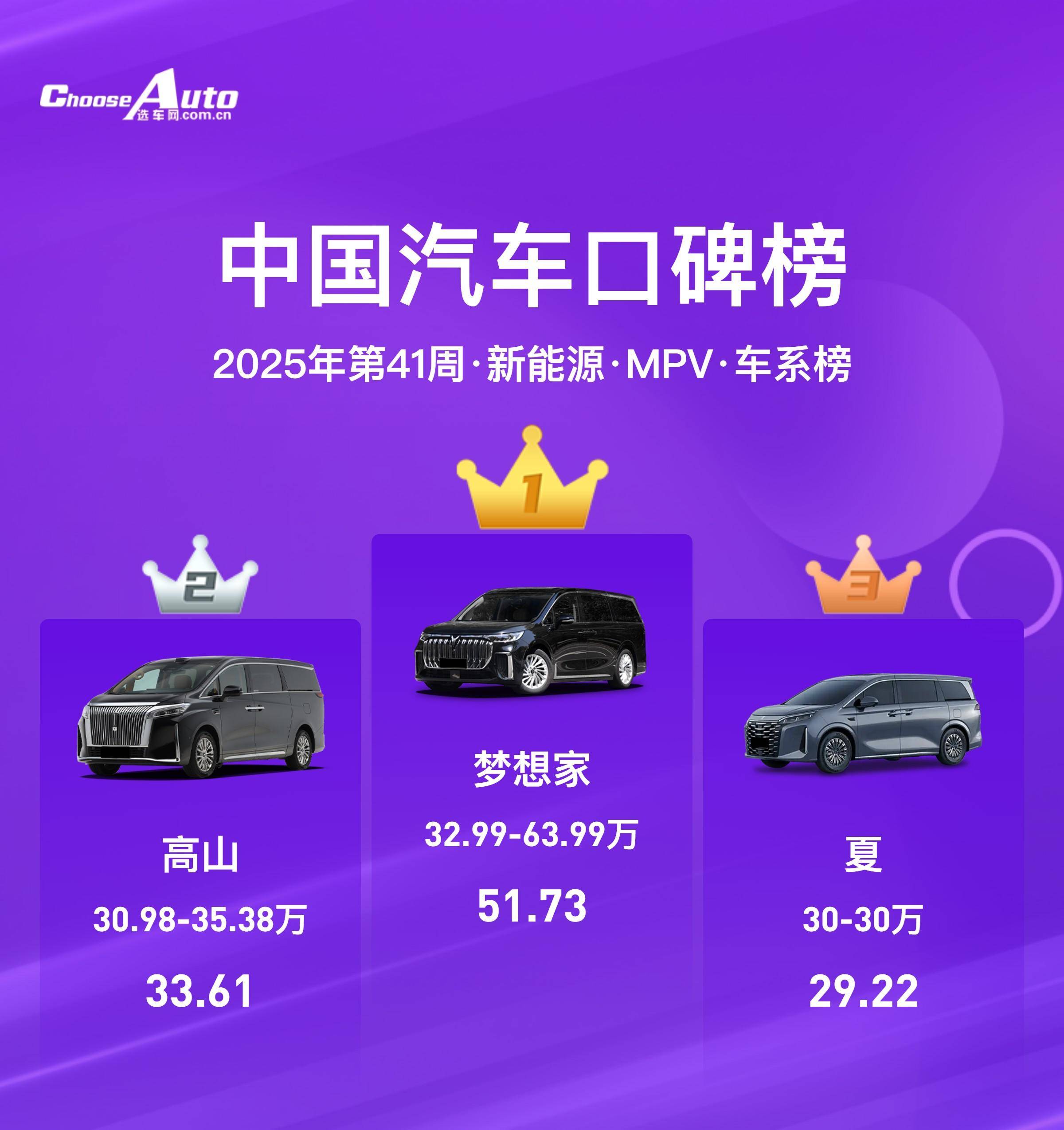 三、新能源MPV:梦想家、高山等车型表现稳健