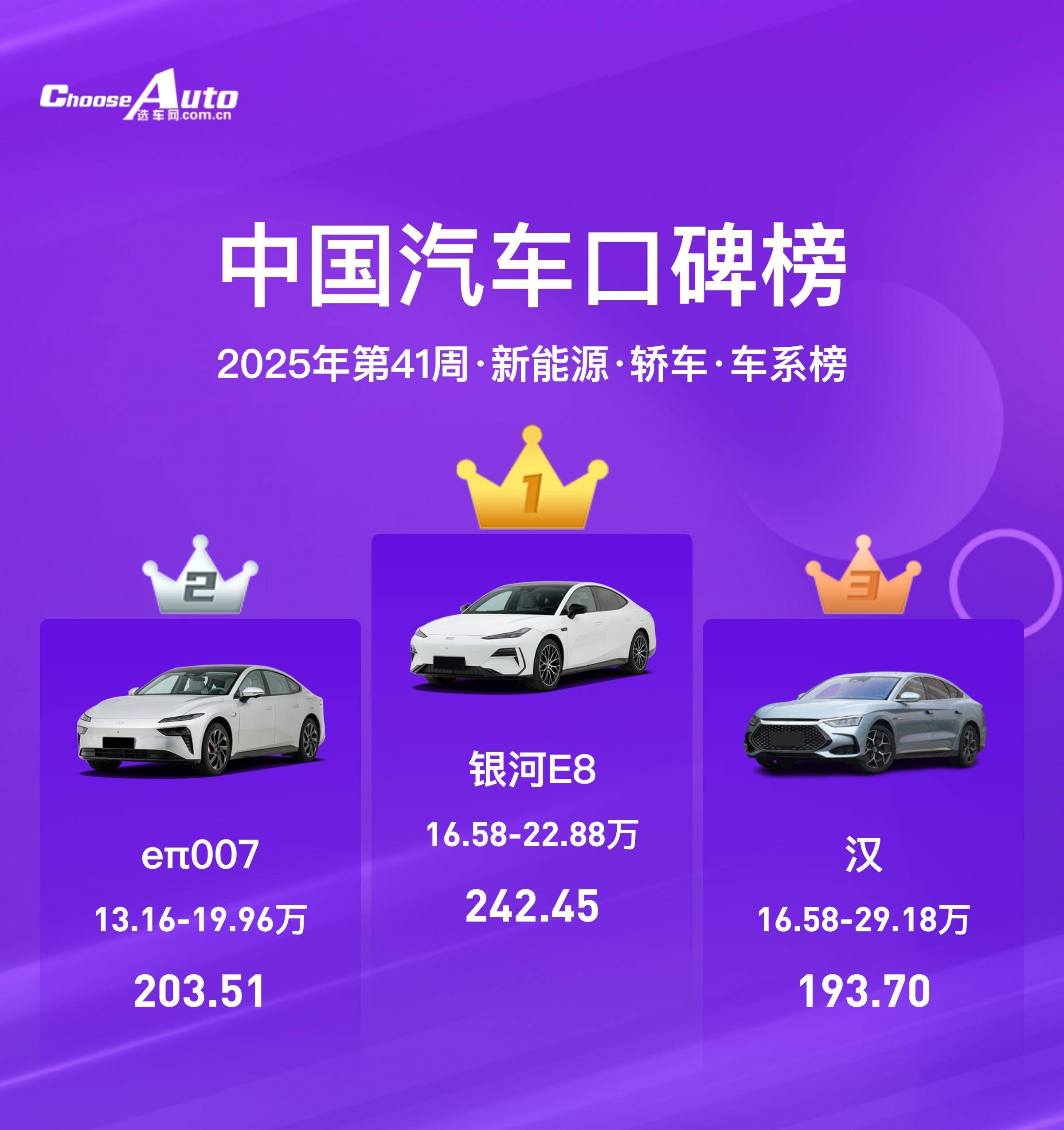 本周中国汽车口碑榜继续聚焦新能源市场,分别从轿车、SUV、MPV三大细分领域出发,呈现消费者关注度较高的车型及其价格区间与口碑表现。